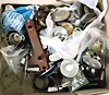 Schöne Fundkiste, Puppenreparaturkasten, Glasaugen, einige Celluloid Ersatzteile