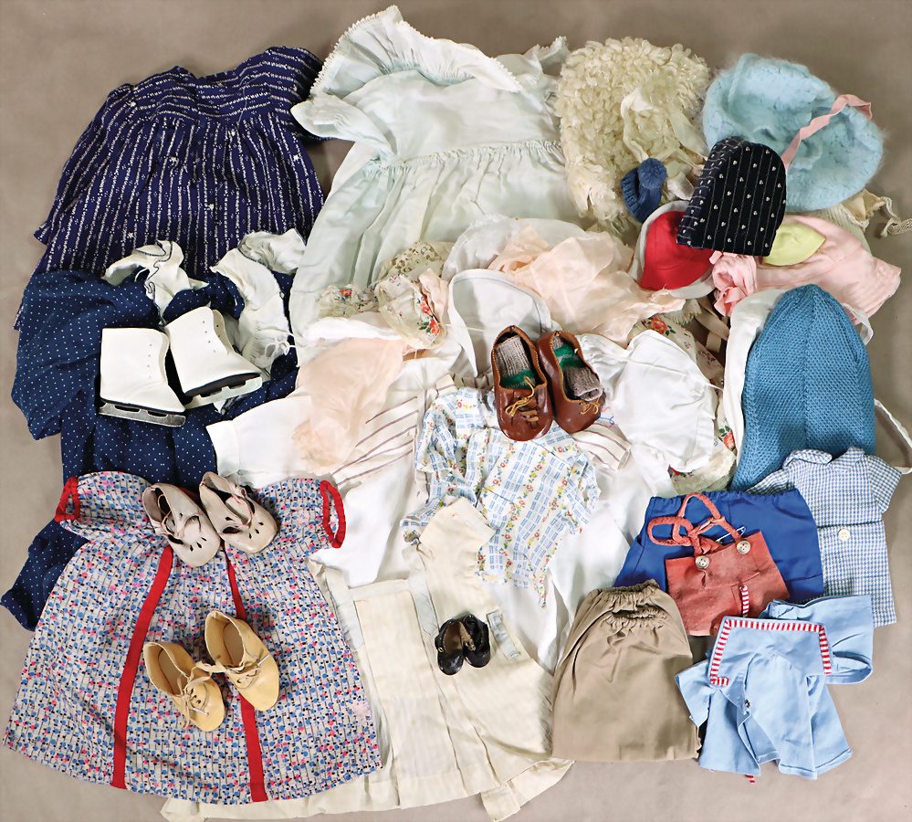 Größeres Konv, Puppenkleidung 1920 60, Schuhe, Strümpfe, Kleider reichh., interessant bitte