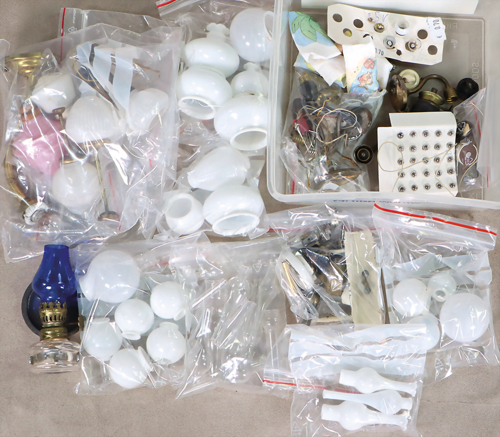 Konv. Lampenschirme für Puppenstuben-Lampen, unterschiedliche Größen, teils Ersatzteilspender, teils guter Zust.