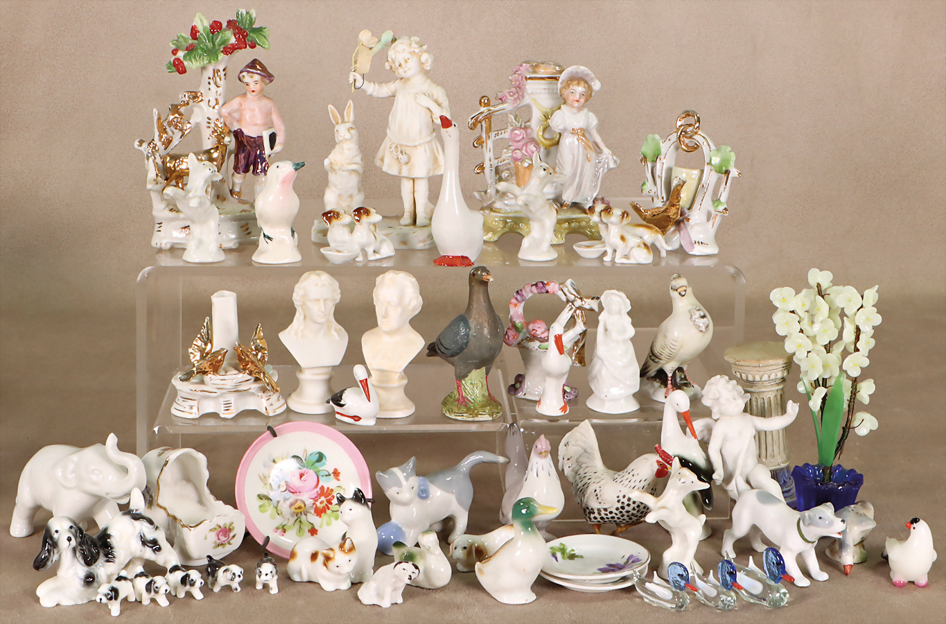 Konv. Porzellanfiguren, teilweise glasiert, unterschiedliche Größen, 1paar Fehlstellen