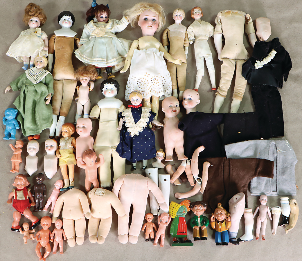 Konv. Puppenstuben-Puppen und Ersatzteile, unterschiedliche Zeit, unterschiedliche Qualität, teils guter Zustand, teils zum Restaurieren