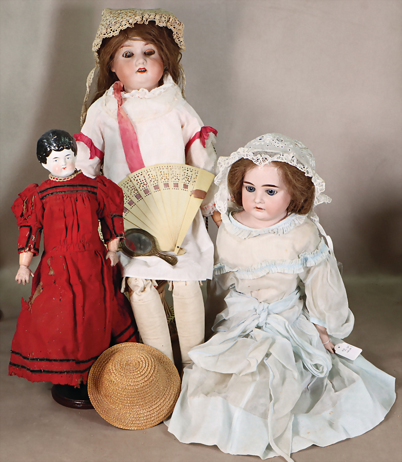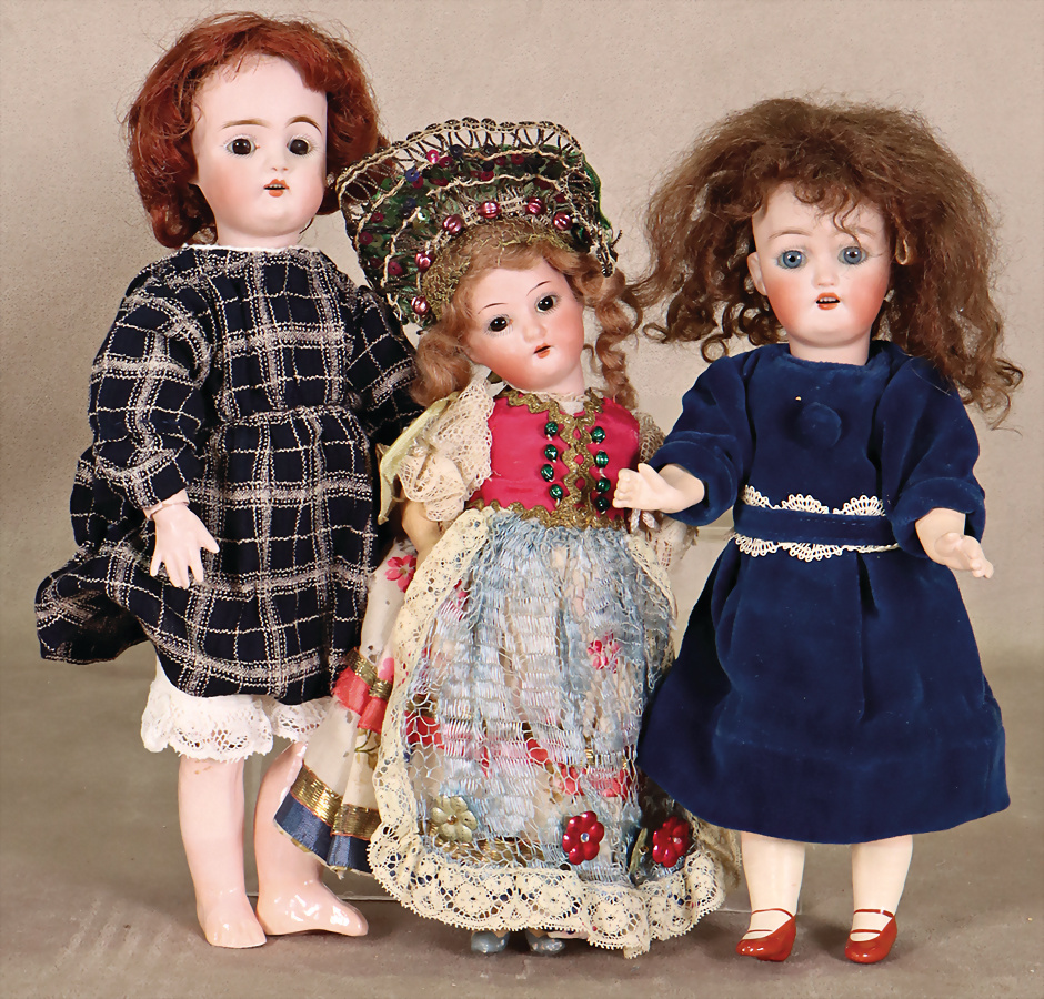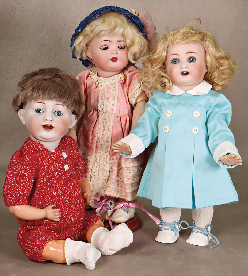 Konv. Porzellankopf-Puppen 20 - 25 cm, 3 Teile, HEUBACH, SIMON & HALBIG, anmodellierte Schuhe u. Strümpfe