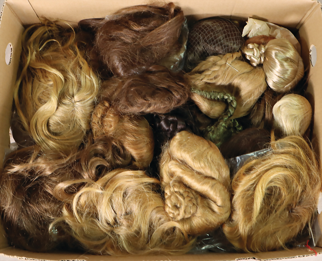 Konv. ca. 40 Teile Perücken, Kunst- u. Echthaar, unterschiedliche Zeit, bitte besichtigen