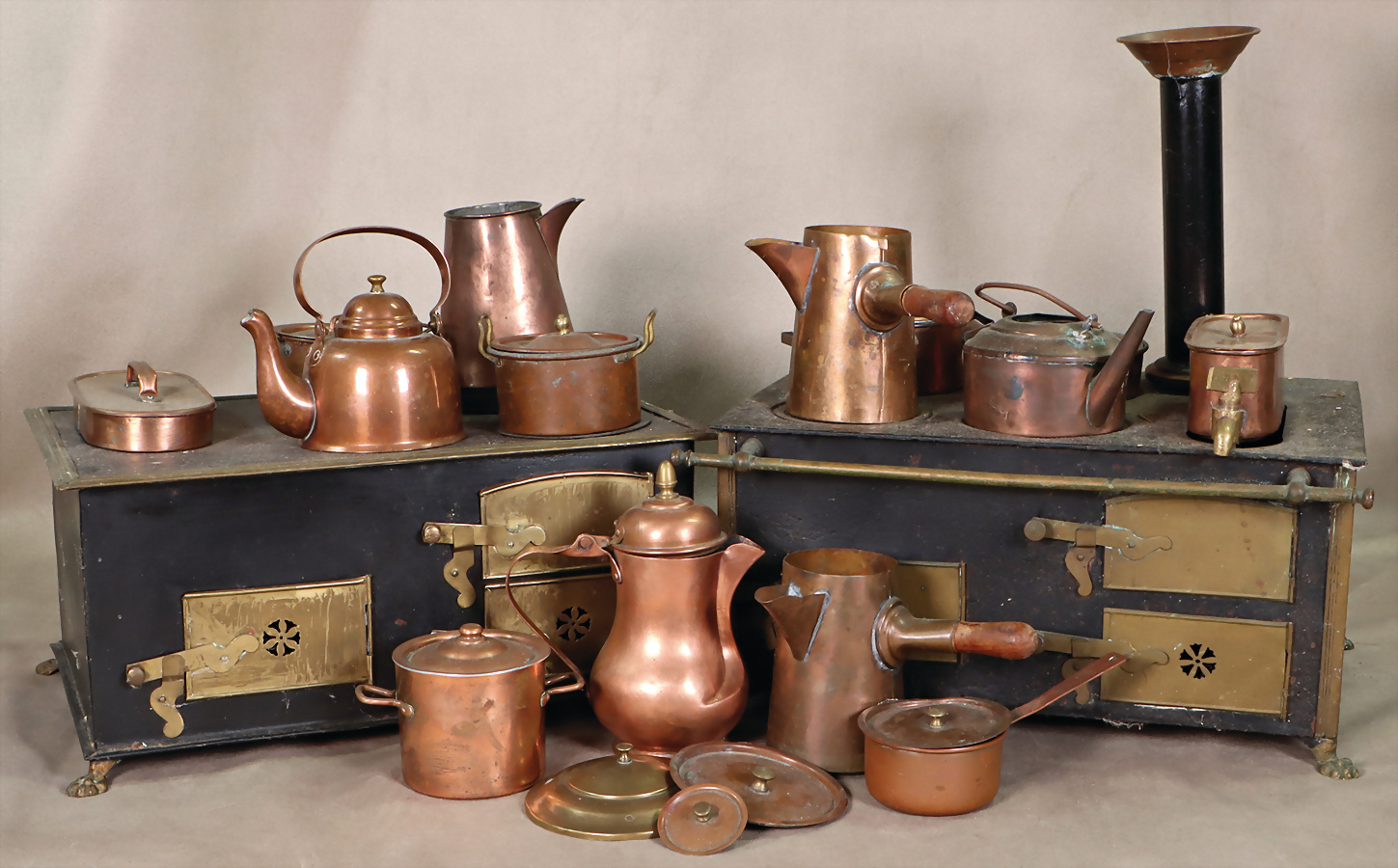 2 Teile, Puppenküchen-Herde, um 1900, nicht ganz kompl.