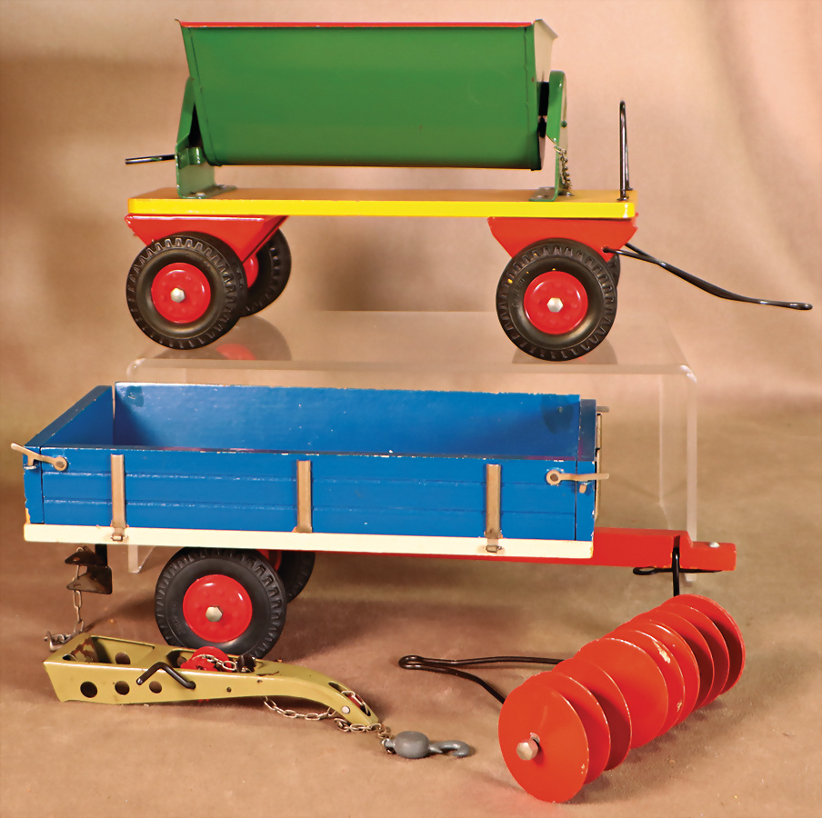 Kipplore, 1 Flugrolle, 1 Anhänger, Holz, Hersteller ?, kl. Kranausleger