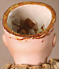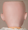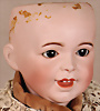 236, Porzellan-Charakter-Baby, Gr. 8, Frankreich, 42 cm, braune Schlafaugen, off./geschl. Mund, Zähne u. Zunge, Sitzbaby-Körper, Masse-Abplatzer an den Händen, Gummis locker, Perücke später