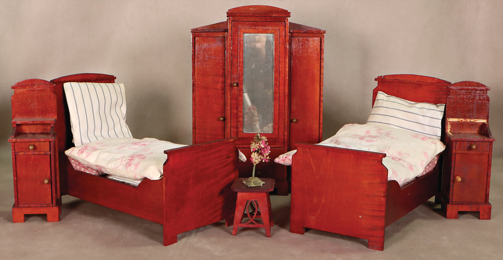 Schlafzimmermöbel, Schrank H: 28,5 cm, 2 Betten, 26 cm, 2 Nachttische, ca. 1910