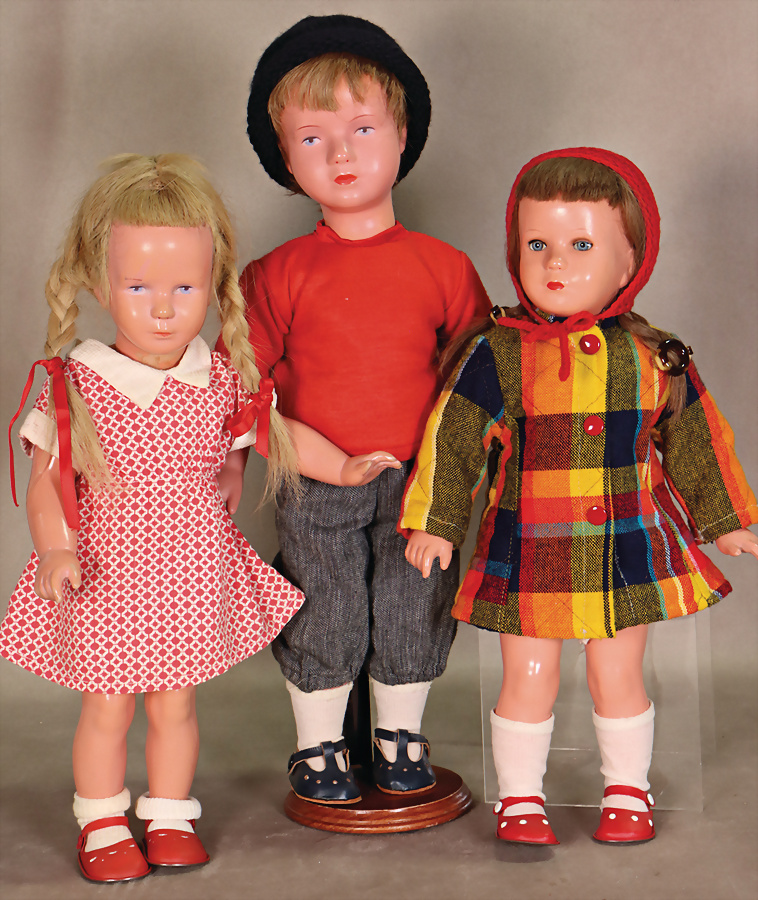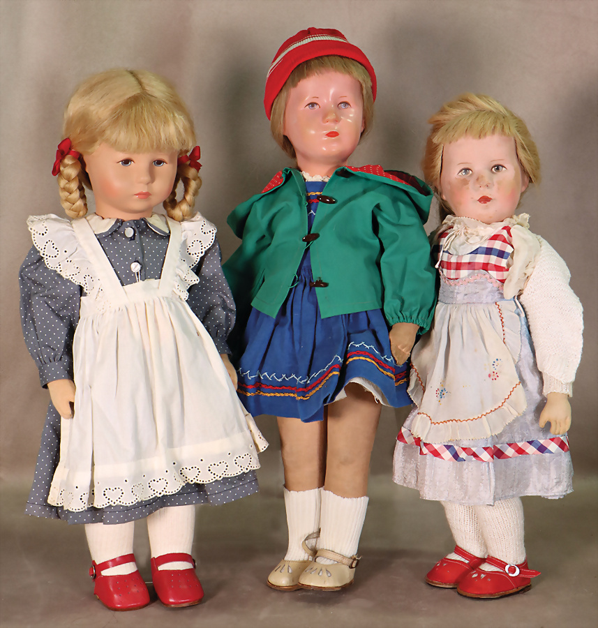 Konv. Typ KÄTHE KRUSE, Tortulon, 3 Teile, 38-44 cm, 2x gemalte Augen, 1x Glasaugen
