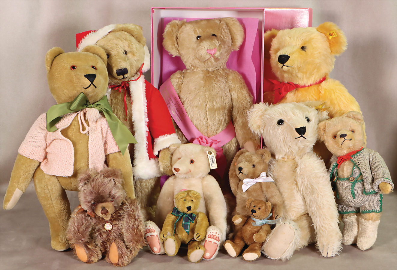 Konv. Bären, Nachkrieg, ULRICH GIERSE Jubiläumsbär, neuw. mit Orig.-Karton, mit Zertifikat, Weihnachtsmann-Bär, STEIFF Dicky, u.a.