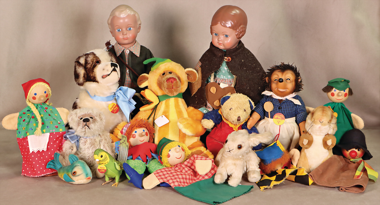 Konv. Stofftiere, unterschiedliche Zeit, Handspielpuppen, KÄTHE KRUSE, SCHILDKRÖT Bär, Hund, mit Drehmechanik, 2x SCHILDKRÖT Puppen, neuere Produktion