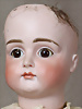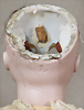 48 cm, Porzellan-Kurbelkopf, braune, nachtr. einzeln fest einges. Glasaugen, 1 Auge liegt lose bei, Orig.-Gliederkörper mit festen Handgelenken, Echthaar-Perücke, teilw. ausgegangen, alter Gipsdeckel