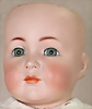 117, 55 cm, Kurbelkopf, blaue Schlafaugen, Augenmechanismus später eingesetzt, Augenlid unten wohl ausgebessert, Haarriss am Hinterkopf, geschl. Mund, Gliederkörper, Echthaar-Perücke später