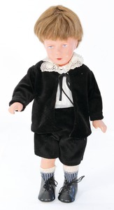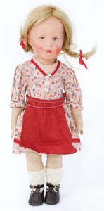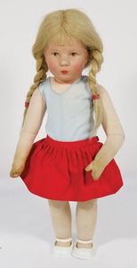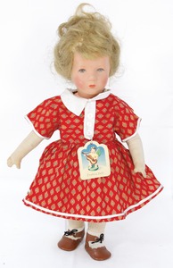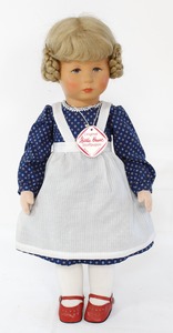 Puppe, Kunststoffkopf, Stoffkörper, Füße gem. Käthe Kruse, Nr. 195, 35 cm, unbespielt, im Orig.-Kart.