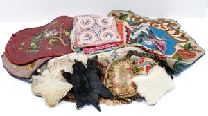 Deckchen und Teppiche für Puppenstuben, mit Perlenstickerei und Petit Point-Stickereien, versch. Größen, 2 Ausleger ,1 x Fell, 1 x mit Bärenkopf