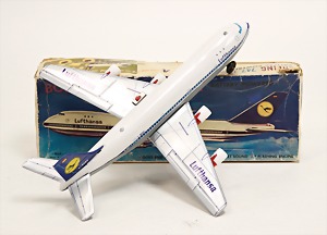 Boing 747, Jumbo Jet, Batterieantrieb, Japan, Haji, Blech- u. Kunststoffteile, 35 cm, sehr guter Zust., im Orig.-Kart.