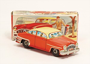 Cabriolet, mit Krückstockschaltung, 26 cm, Blech, Uhrwerk intakt, guter Zust., mit kl. Spielspuren, Reserverad ergänzt