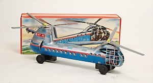 Hubschrauber, Nr. 15, Blech lithogr., 14 cm, US-Zone, Uhrwerk intakt, im Orig.-Kart., guter Zust.
