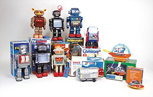 Konv. Space, fliegende Untertasse, Marchesini, Space Shuttle, Astronaut, Lagerungsspuren, Batterieopperated, Dynamic, Figur, Star Robot, Hongkong, Monsieur Trapp Trapp Gama, Space Commander Robot, Hongkong, ,,Der Unbezwingliche“, Robot, Parland, Raumschiffrobot, Dickie, Super TV Robot, S u. H. Japan, TV Spaceman, S u. H Japan, alles neuwertig, Orig.-Kart.