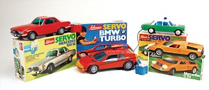 4 Teile, Servo BMW, 3.0, CLS Kunststoff, Porsche 917, Elektro, 356213, Porsche Carrera RS Super, Orig.-Getreu, mit Spoiler u. Heckflosse, neuwerig, Orig.-Kart. , Cadilac 5505, neuwertig, Orig.-Kart., Kart. Verschlissen