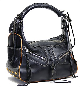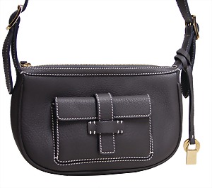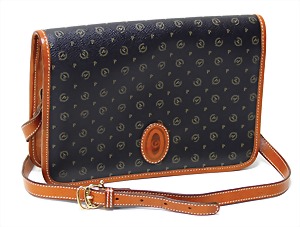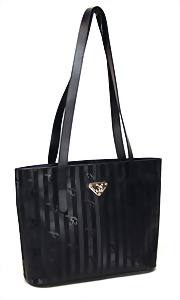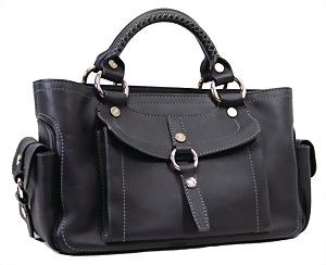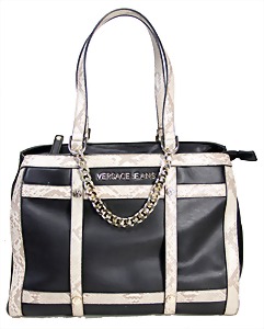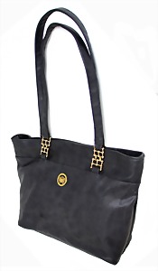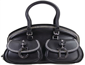 Damenhandtasche, schwarz, weiß abgesteppte Nähte, 1 gr. Fülltasche, 2 größenverstellbareTragehenkel, vorne 2 große versilberte "C" und "D" Anhänger auf den beiden Außentaschen, 2 Seitentaschen innen, davon 1x mit Reißverschluss, H: 15 cm, mit Tragehenkel: 25 cm, B: 32 cm, T: 14 cm, neuw. Zust.