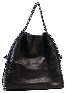 Damenhandtasche, schwarzes Kalbsleder, 1 Kettentrageriemen, 1 gr. Fülltasche mit Reißverschluss, mittig Innentasche mit Reißverschluss, dunkelblauer Innenstoff, H: 34 cm, mit Trageriemen: 52 cm, B: 33 cm, T: 7 cm, leichte Gebrauchsspuren, sonst guter Zust.