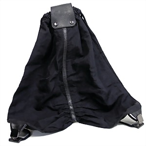 Damenrucksack-Tasche, schwarzer Seidenstoff, 1 gr. Fülltasche, mit Bär als Anhänger zum Verschließen, silberner Verschluss, innen roter Seidenstoff, 1 kl. Seitentasche innen, auf der Rückseite „TOUS“ eingestickt, H: 22 cm, B. unten: 17,5 cm, B. oben: 11 cm, T: 6 cm, mit schwarzem Tous-Staubbeutel, guter Zust.