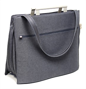 Damentasche, grau/blau, mit abgesteppten weißen Nähten, 2 kl. Außentaschen, davon 1x mit Reißverschluss,1 größenverstellbarer Schultertrageriemen, goldene Messingbeschläge, Innenfutter aus Baumwollstoff, 1 gr. Fülltasche mit Reißverschluss, H: 17 cm, B: 24 cm, T: 4 cm, neuw. Zust.