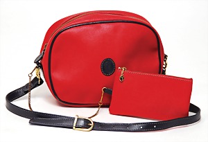 Damenhandtasche, nutzbar als Schultertragetasche sowie mit kl. Handtragehenkel, naturbelassenes, weiches, kirschrotes Kalbsleder, goldene Messingbeschläge, Innenfutter aus dunkelbraunem Baumwollstoff, 1 abnehmbarer größenverstellbarer Schultertrageriemen, 1 gr. Fülltasche, 3 Seitentaschen, davon 1x mit Reißverschluss, H: 21 cm, mit Tragehenkel: 34 cm, B: 32 cm, T: 12 cm, neuw. Zust.