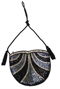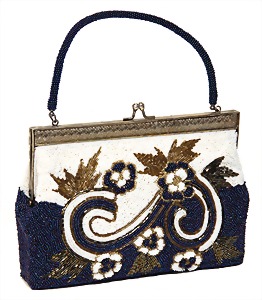 Damenhandtasche, 30er Jahre Stil, mit reichh. Perlenbesatz, runde Form, B: 19 cm, H: 18 cm, neuw. Zust.