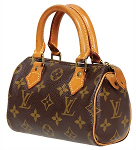 Damenhandtasche, Modell: Mini HL Monogram Canvas, 1 gr. Fülltasche mit Reißverschluss, brauner Innenstoff, 2 beigefarbene Leder-Tragehenkel, H: 10 cm, mit Henkel: 18 cm, B: 16 cm, T: 7 cm, teilw. leichte Gebrauchsspuren, sonst guter Zust.