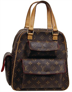 Damenhandtasche, Modell: Excentri-Cite Monogram Canvas, 1 gr. Fülltasche mit Reißverschluss, 2 Außentaschen auf der Frontseite mit Magnetverschluss, 1 Außentasche seitlich, Innenstoff aus bordeauxrotem Wildleder, 1 Seitentasche innen, beigefarbenes Louis Vuitton Leder Emblem innen, 2 beigefarbene Leder-Tragehenkel, H: 27 cm, B: 26 cm, T: 12 cm, neuw. Zust.