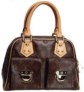 Damenhandtasche, Modell: Manhattan PM, Monogram Canvas, 1 gr. Fülltasche mit Reißverschluss, 2 Taschen auf der Frontseite mit Schnappverschluss, 1 Seitentasche mit Reißverschluss innen, beigefarbenes Wildleder und Louis Vuitton Leder-Emblem innen, 2 beigefarbene Leder-Tragehenkel, H: 20 cm, mit Henkel: 35,5 cm, B: 29,5 cm, T: 12 cm, mit Louis Vuitton Staubbeutel, sehr guter Zust.