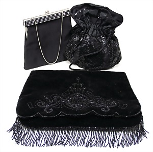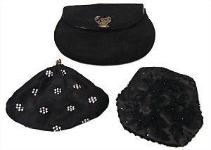 3 Handtaschen, schwarz, untersch. Alter, untersch. Design, teilw. mit Perlen und Strasssteinverzierung, H: 11 cm, B: 13-16 cm, altersbed. teilw. starke Gebrauchsspuren