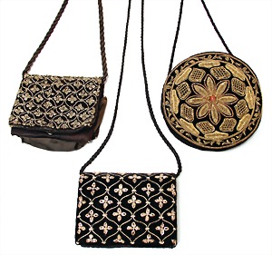 3 Handtaschen, schwarz, untersch. Alter, untersch. Design, bestickt, H: 10-14 cm, B: 13-15 cm, altersbed. Gebrauchsspuren