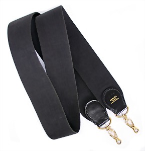 Schultergurt, schwarz, Stoff mit verstärkten Leder-Endstücken, goldfarbene Messingverschlüsse, goldfarbener Hermès-Stempel, L: 1,10 m, B: 5 cm, guter Zust.