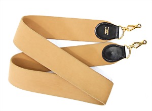 Schultergurt, beige, Stoff mit verstärkten Leder-Endstücken, goldfarbene Messingverschlüsse, goldfarbener Hermès-Stempel, L: 1,10 m, B: 5 cm, guter Zust.