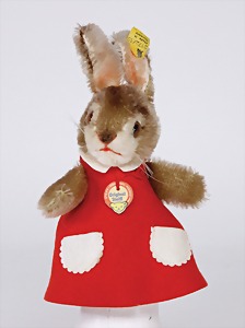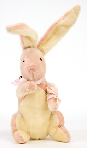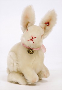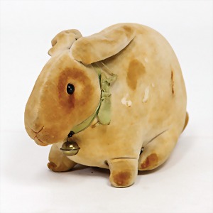 Hase, Samttier, ca. 1910, ohne Knopf, Knopfaugen, Rassel, 2 kl. Fehlstellen seitl., sonst gut