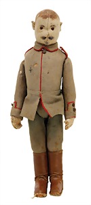 Soldat, Filz, 28 cm, Knopfaugen, altersbed. Fehler an der Kleidung sowie den Händen, ohne Knopf