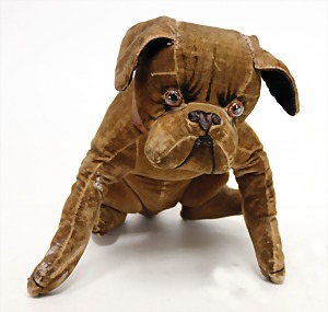 Samt Bully, 30er Jahre, H: 26 cm, kl. Stellen aufgerieben, wenig Samtverlust am Rücken, ausdrucksstark, schöne Dekoration zu einer größeren Puppe