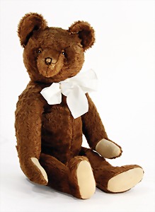 Teddy, wohl BING 20er Jahre, dunkelbraun, 49 cm, lange abgeknickte Arme, Buckel, Orig. Filztatzen, ein wenig Mohairverlust um die Schnauze herum, sonst gut