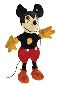 Mickey Mouse, 21 cm, 30er Jahre, mit Knopf u. Schild, Druck auf Fussboden, Mickey Mouse Walt Disney New York, guter Zust.