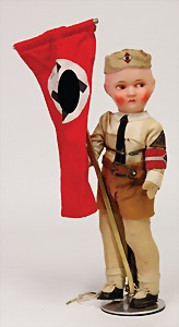 Pimpf, Masse-Puppe, 35 cm, Kurbelkopf, Stoff-Körper, Orig.-Kleidung, Schuhe u. Strümpfe, mit Fahne, Orig.-Zust., Gürtel gebrochen