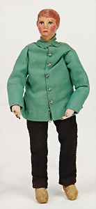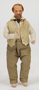 Puppenstuben-Puppe, Mann mit Bart, 17 cm, Masse-Kopf, Stoff-Körper, Hinterkopf seitl. farbl. ausgebessert, Orig.-Kleidung, absolut selten