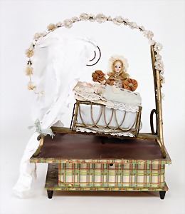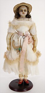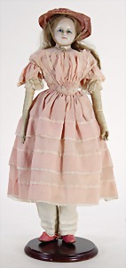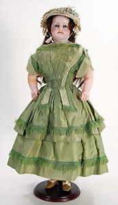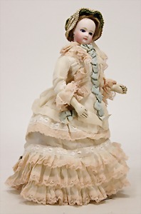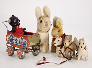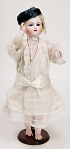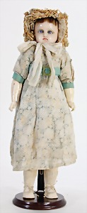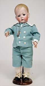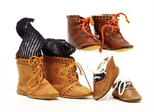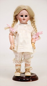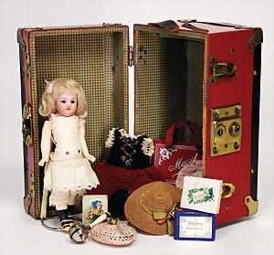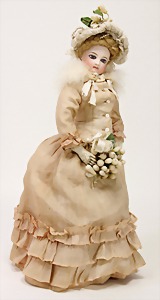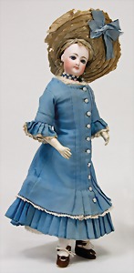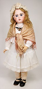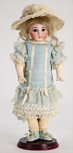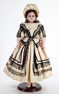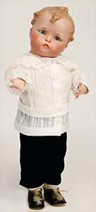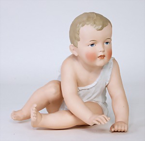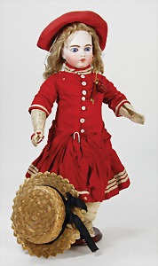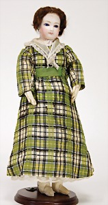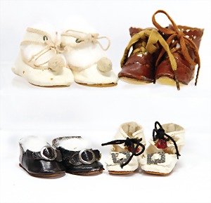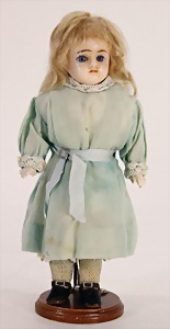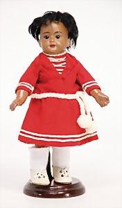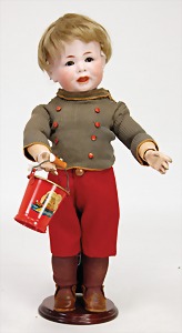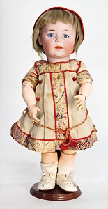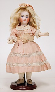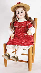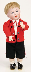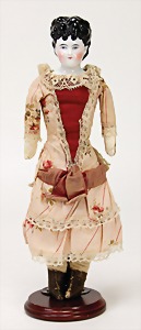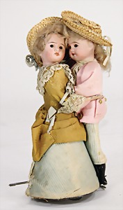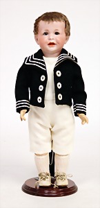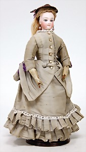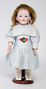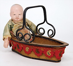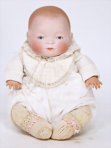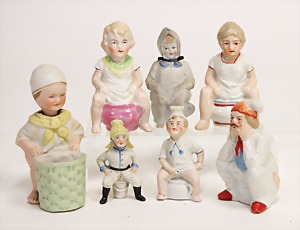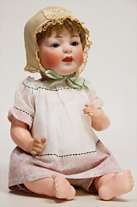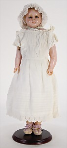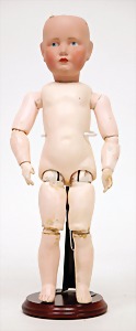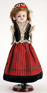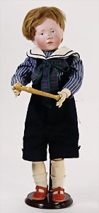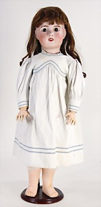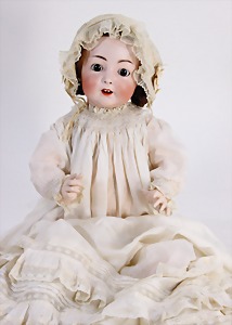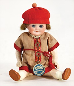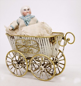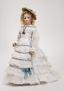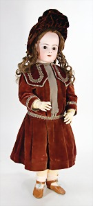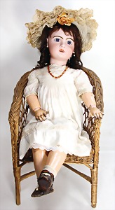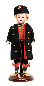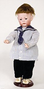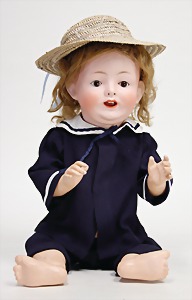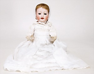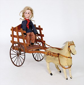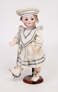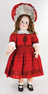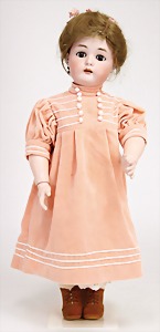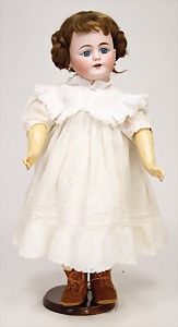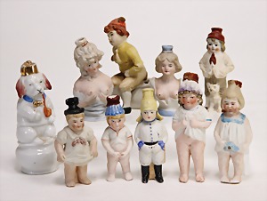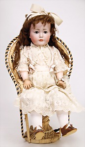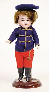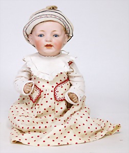 3 Indianer-Puppen, ungem. 1x 15 cm, Biskuit-Kurbelkopf, fest eingesetzte braune Glasaugen, geschl. Mund, Masse-Stehkörper, 1x 20 cm, AM, Biskuit-Kurbelkopf, braune fest eingesetzte Glasaugen, off. Mund, Kopf geklebt, Masse-Stehkörper, ungem., 1x 27 cm, Biskuit-Kurbelkopf, fest eingesetzte braune Glasaugen, off. Mund, oben Zähne, Masse-Stehkörper, anmodellierte Schuhe, Orig.-Mohairperücken, in Spanschachtel
