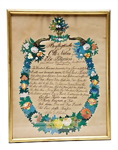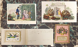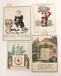 4 Glückwunschkarten, Trauung, 1816 – 1851, handcoloriert