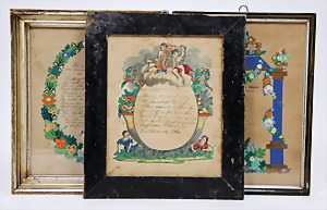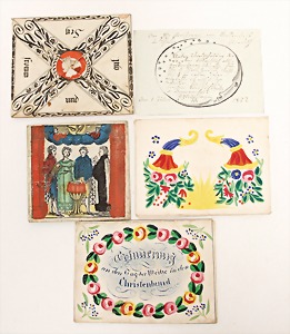 5 Teile, Taufbriefe, 1820 – 1860, meist handcoloriert
