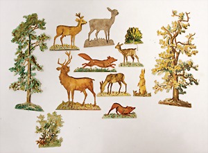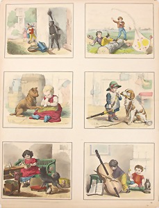 Album, mit losen Blättern, ca. 1850, Chromolithographien, rückseitig in etwa zur Hälfte beschriftet (lose Blätter)
