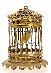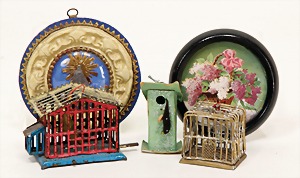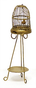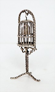 Puppenstuben-Vogelkäfig, wohl silber, 9,5 cm, für kl. herschaftl. Stube