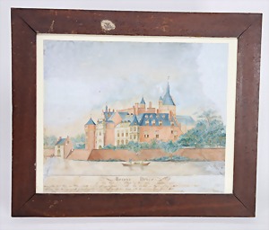 W. F. S. Schatulle mit losen Blättern, nur wenige beschrieben, sehr schönes Innenbild, 3 Bilder mit Seidenstickerei, ca. 1850