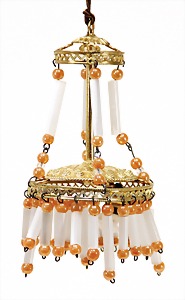 Puppenstuben-Deckenleuchter, Messingblech, Glasperlen montiert, 8 cm